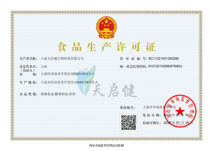 大連天啟健生物科技有限公司創(chuàng)建于2012年,是一家專業(yè)從事食品、保健食品的研發(fā)、生產(chǎn)和銷售的企業(yè)。